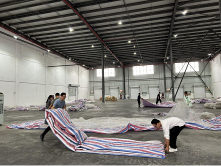 倉庫中,黨員干部職工充分發(fā)揚不怕臟、不怕累的優(yōu)良作風(fēng)和團(tuán)結(jié)協(xié)作的良好精神風(fēng)貌,兩兩配合清理薄膜、疊彩條布、清掃垃圾,有效提升庫房的使用價值,同心協(xié)力營造整潔有序的生產(chǎn)環(huán)境。