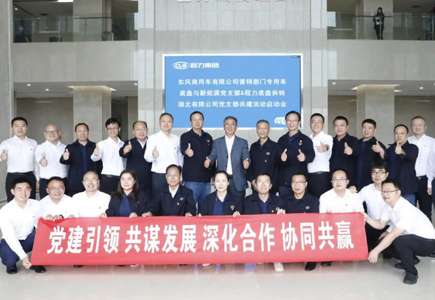 5月末,程力集團(tuán)黨委牽頭,東風(fēng)商用車有限公司營(yíng)銷部門專用車底盤與新能源黨支部攜手程力底盤供銷湖北有限公司黨支部,聯(lián)合開展“奮進(jìn)新時(shí)代,共創(chuàng)向未來(lái)”共建活動(dòng)。