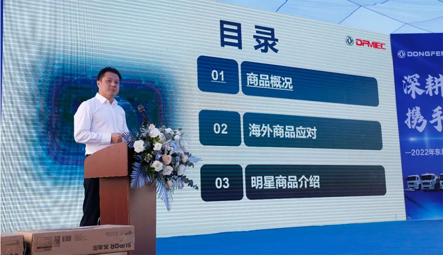 楊濤助理表示,中國東風汽車工業(yè)出口有限公司是東風汽車集團有限公司的二級單位,是一家專業(yè)從事東風集團汽車出口、全球供應鏈服務、工業(yè)投資的外貿(mào)公司。2021年東風的海外事業(yè)取得了亮眼的成績,海外出口車輛(含成套散件)15.4萬輛,同比增長了1.2倍,創(chuàng)造了歷史最高紀錄;2022年將沖刺挑戰(zhàn)20萬輛的銷售目標,借此推薦會的機遇,希望程力和隨州的銷售經(jīng)理,能夠搭上東風海外事業(yè)發(fā)展的快速列車,共創(chuàng)新業(yè)績新輝煌。