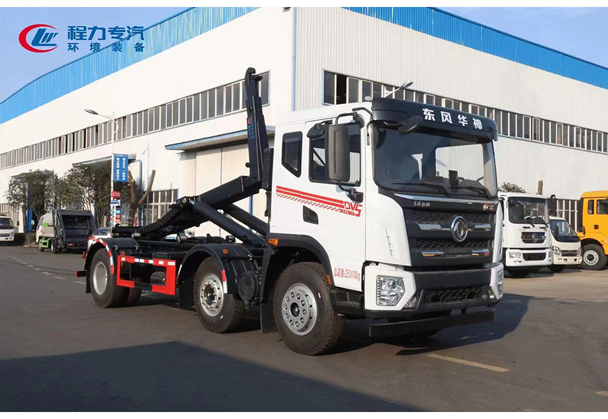 程力專汽東風(fēng)華神后雙橋勾臂垃圾車+移動(dòng)壓縮箱