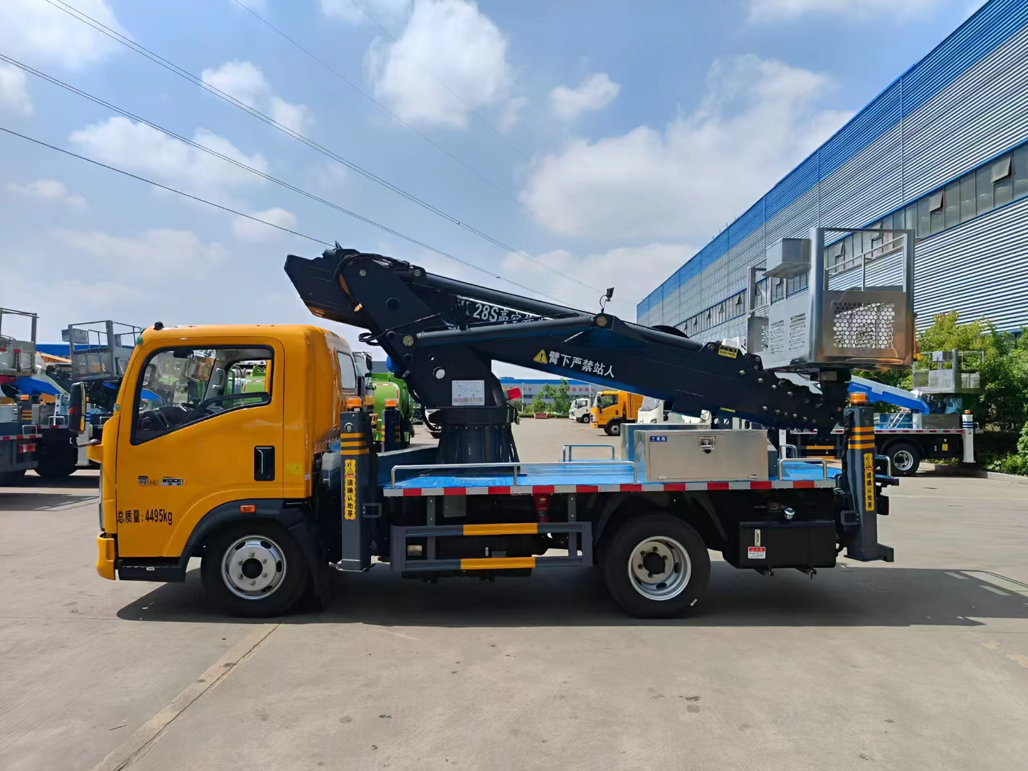 | 上裝配置 | 高空作業(yè)車基本功能安全配置: 最大作業(yè)高度23米,28米,31米 工作平臺: 高強度不銹鋼尺寸:1600*700*1000mm;360度連續(xù)回轉,電控操作,另配有手動應急操作; 控制系統(tǒng):CAN總線控制系統(tǒng),配有無線遙控器、實現無級調速, 調平系統(tǒng):靜液自動調平 臂架形式:★多邊形型工作臂,同步伸縮 支腿:★前V后H型/前V后V單獨可調(控制) | ||